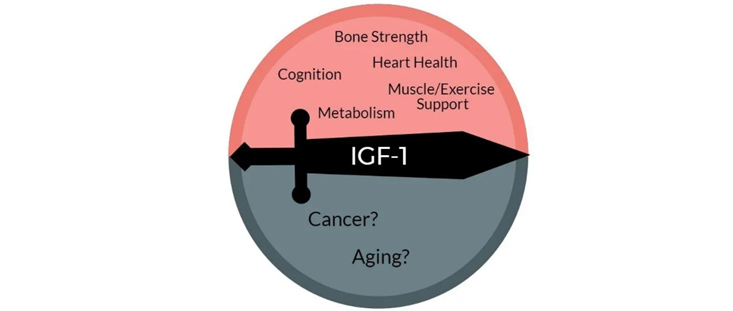 IGF-1 is a potent growth factor that helps young animals grow (therefore, from an evolutionary perspective, it makes sense that dairy stimulates IGF-1 synthesis). For longevity purposes, IGF-1 is a double-edged sword. On the positive side, it helps with muscle growth, vitality, and immune function and reduces the risk of atherosclerosis as well as dementia. On the negative side, it may elevate the risk of cancer and slightly increase the speed of aging.
